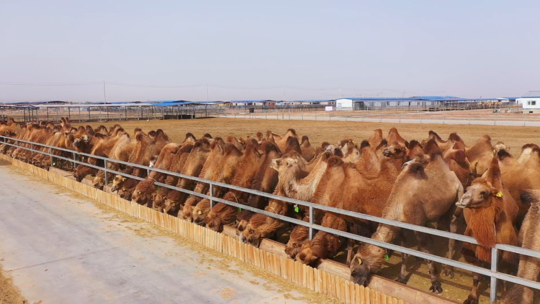 在柯坪县万峰驼饲养基地,规范化暖圈整齐划一,圈舍内的骆驼毛色鲜亮、膘肥体壮,尽显生机。基地内,干草、青贮等各类饲料分类堆积、储藏足够,这些物资将专项保证基地约1万峰骆驼的越冬需求。