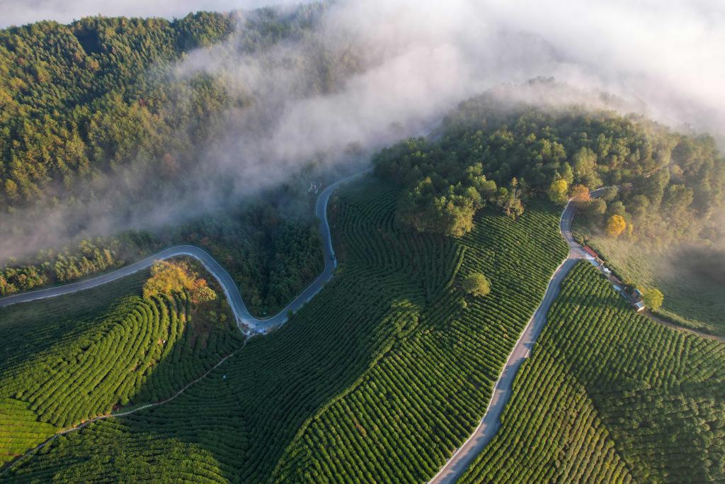 2024年11月8日拍摄的位于安徽省宣城市旌德县三溪镇的农村公路(无人机照片)。新华社记者 曹力 摄