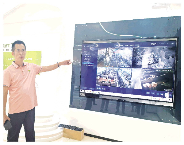 在桂林市大信现代农业有限公司沙子长冲生猪养殖场展示大厅,负责人张凯介绍智慧养猪情况。记者秦丽云 摄